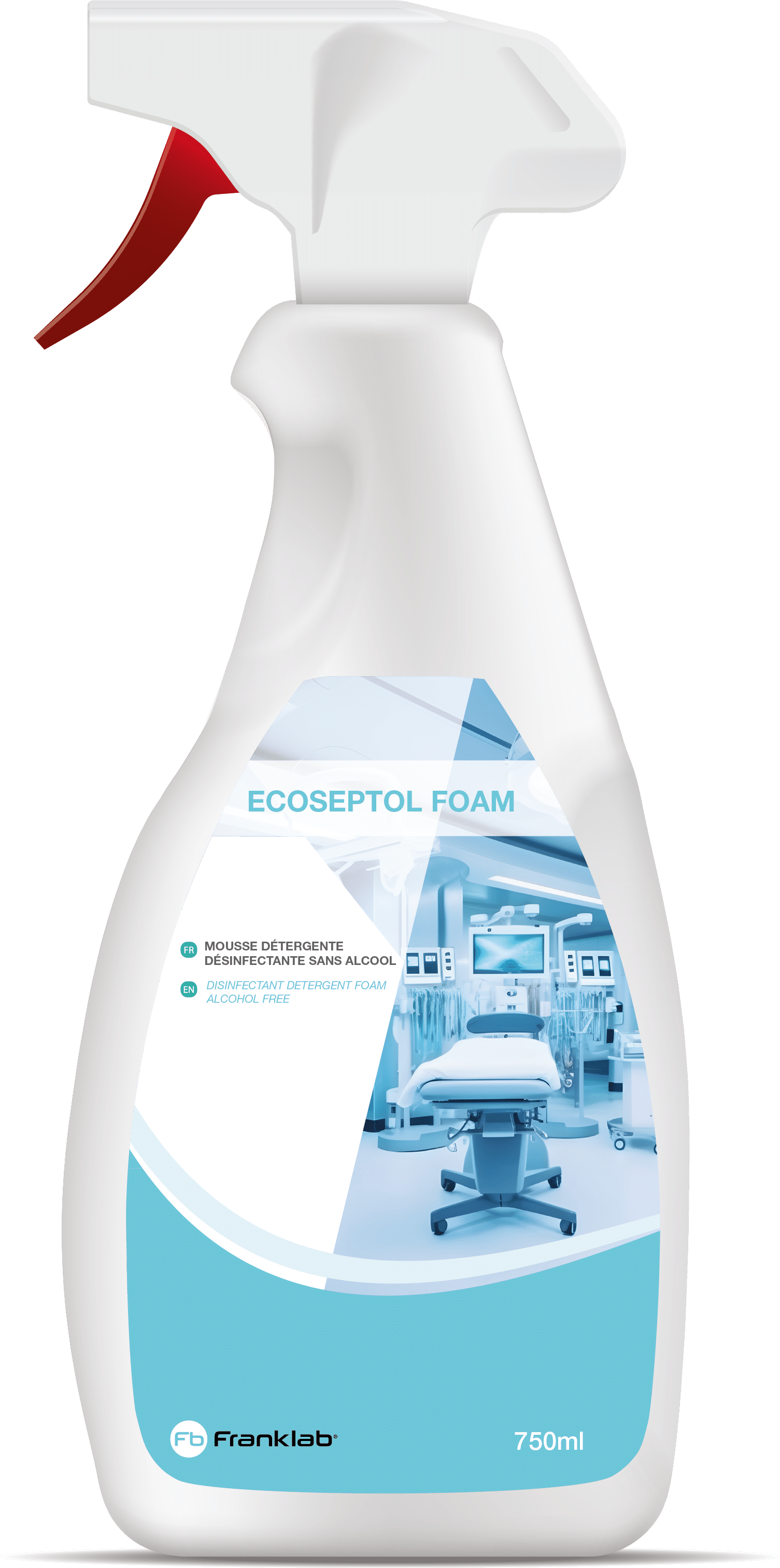 Mousse détergente désinfectante pour le bionettoyage des surfaces hautes et mobilier médicaux